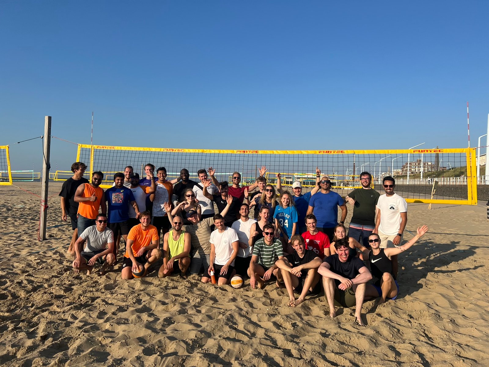 Tussen april en oktober vind je ons op het strand, lekker buiten, aan de zee. We bieden onze bedrijfsuitjes aan op het Sportstrand Den Haag, naast het noordelijk havenhoofd. Hier staan onze 17 beachvolleybalvelden en is tevens onze trainingslocatie. Er zijn kleedkamers en toiletten aanwezig, en we kunnen binnen schuilen als het regent.